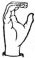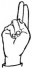 На ћирилици написано КОСТАДИН ЈАНИЧИЈЕВИЋ састоји се из 19 слова [?]. Исписано ћириличном једноручном азбуком за глувонеме: